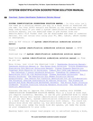 Read system identification soderstrom solution manual problems Kindle Editon online is a convenient and frugal way to read system identification soderstrom solution manual problems you love right from the comfort of your own home. Yes, there sites where you can get Kindle Editon "for free" but the ones listed below are clean from viruses and completely legal to use.